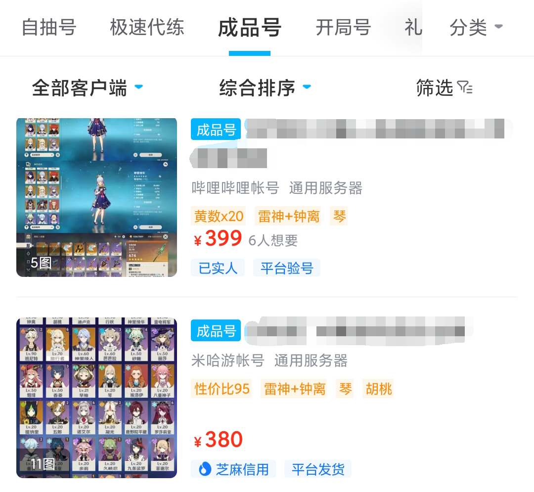 首先,原神作为一款角色培养类型的游戏,玩家的战力就取决与玩家能否拥有高战力的角色,而很多高战力角色是需要玩家进行抽卡才能获得的,胡桃就是其中之一。所以很多想要培养胡桃玩家,就会通过购买胡桃自抽号,通过自抽号里面的大量的抽卡资源来获取胡桃,而交易猫平台上就有这样的账号提供,玩家可以在平台上进行交易。