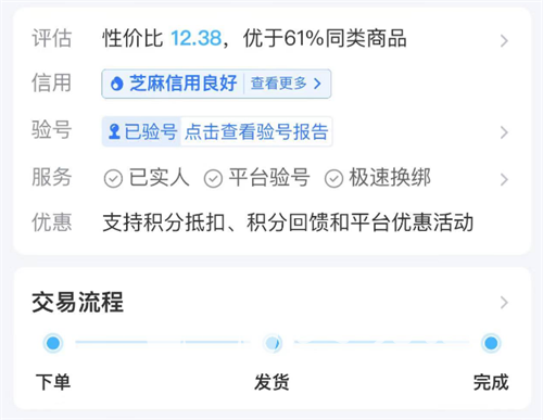在购买帐号的时候,性价比一直都是首要考虑因素,在很多小平台,用户是无法确定账号的真正价值的,因为它不能提供各方面的信息报告,而交易猫不同,为了能够促进大家的交易,对于账号各方面评估都做到了清晰的展示,玩家们通过详情页即可了解,无论是信用等级的高低还是账号真实性的报告都能够轻松获取,这也正是它与其他平台的区别所在。