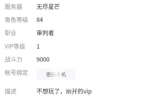 1.账号信息展示全面,账号出售更易达成。在进行账户出售前,卖家需要根据平台的要求,将号内的包含的东西,照实上传给平台。就那这个游戏来说,卖家需要将角色的等级,所在区服、战力等信息进行提交,平台会将这些内容,完整地展示给买家,帮你更快地出号。