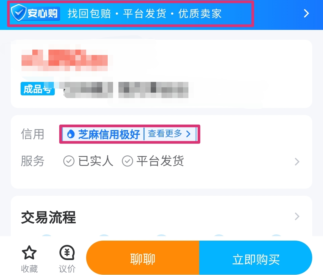 接下来,小编就重点说一说在交易猫上交易靠不靠谱。首先,卖家的芝麻信用是可以在商品页上查看的,此外在售的许多商品都拥有多项保障服务,大家可以通过看商品上带的标识知晓商品有哪些保障,比如安心购、保险赠送、找回包赔等等。