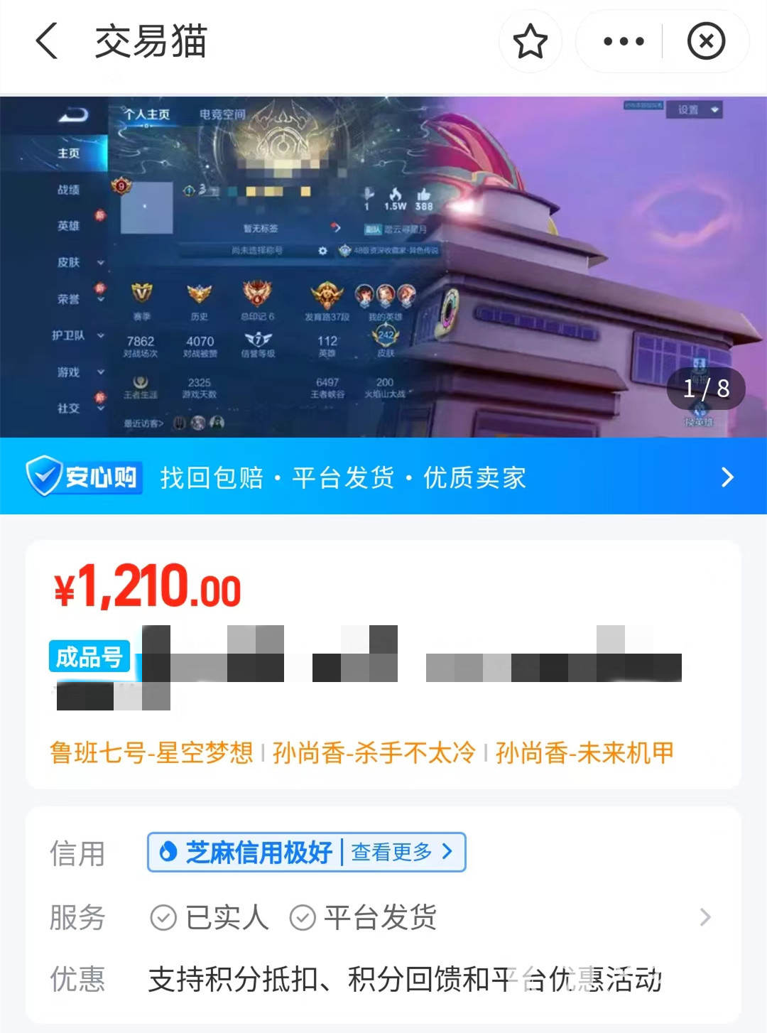 接下来就需要判断你的账号优势了,因为任何一种优势都有可能让你的升职,比如你是v9账号的同时,还是一个高段位王者,此时你的账号就会比同类账号有优势,价格自然可以设定的高一点,或者说你的账号皮肤数量很多、并且还有很多限定皮肤,这同样可以提升你的账号价格。