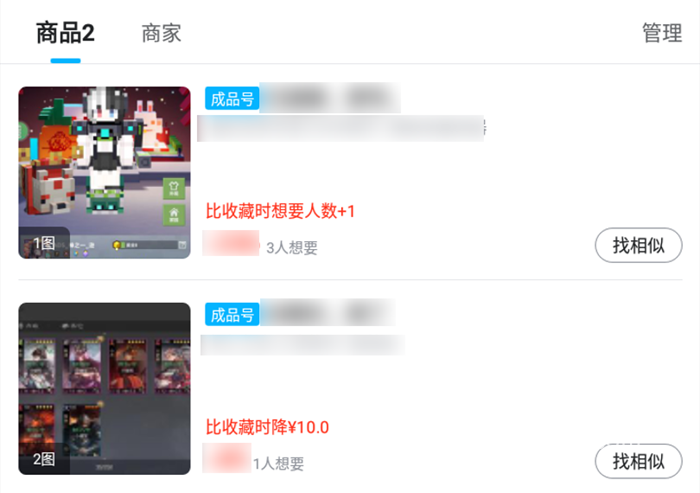 这里推荐给大家两个小技巧,第一个是使用上方的搜索功能,通过搜索某一个道具或者是账号的等级,就能够快速检索出来一些符合条件的商品。第二个就是利用收藏功能,这样就可以将条件差不多的商品聚合在一起进行比价。如果是想要购买账号的话,通过商品收藏还能够查看热度以及价格的变化情况哦。