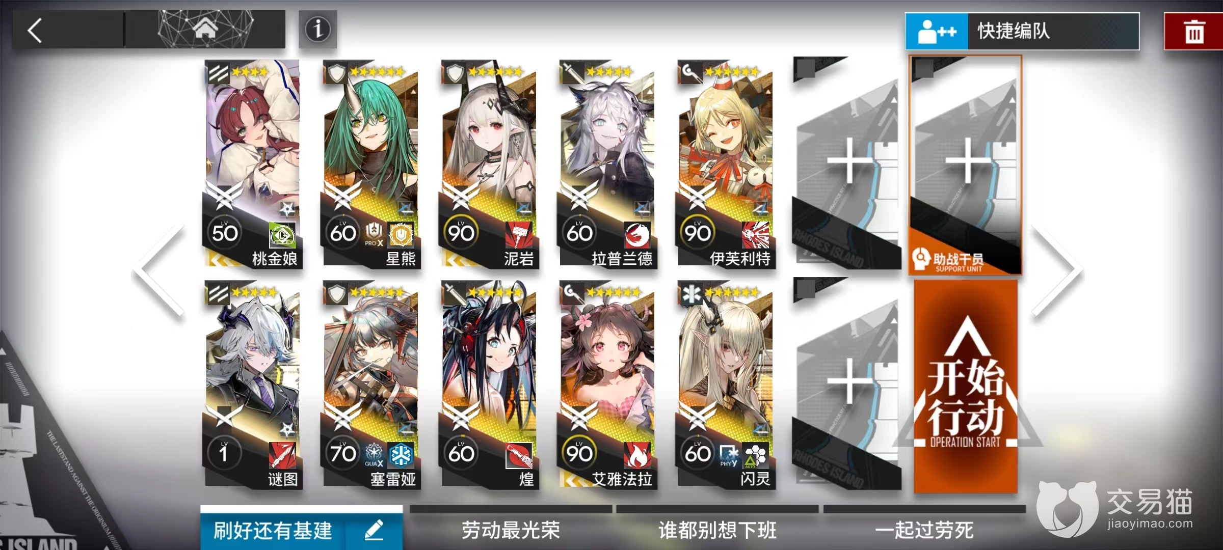 这是本次剿灭作战中小编选取的干员,选中干员的功能分为三类,一类是回费,一类是输出,一类是站场。每个人持有的干员都不同,缺少图中对应的干员,使用功能相同的干员进行替代既可。