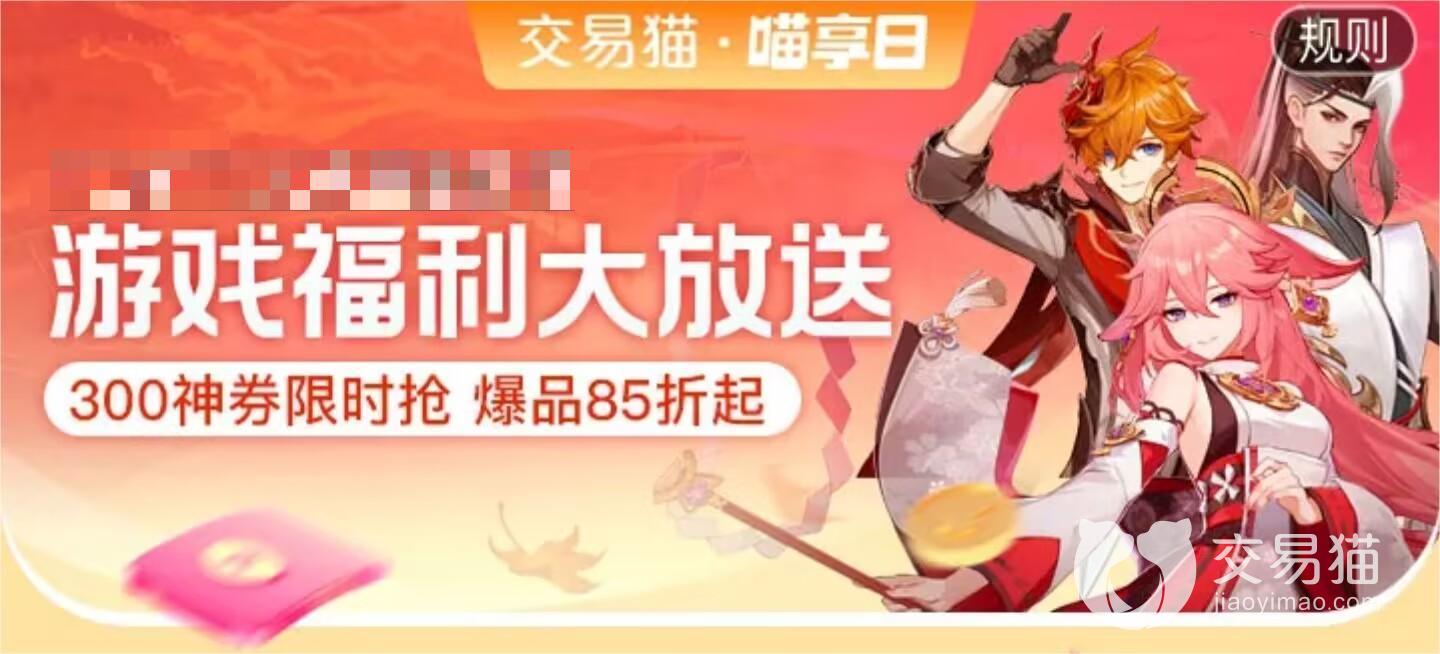交易猫会不定时的推出各种优惠活动,比如成品号的促销,会对许多优质成品号进行打折,满减等,让你可以用低价买到好账号。交易猫每个月还有喵享日的活动,喵享日当天赠送很多优惠券,大家在这天可以捡漏买到很多优质账号哦。