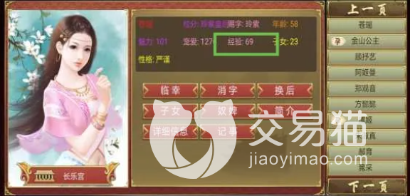 这是第一个方法也是最直观的方法,通过经验来查看,如果你没有翻拍这位妃子,但是她的经验涨了,那就有鬼了哦。