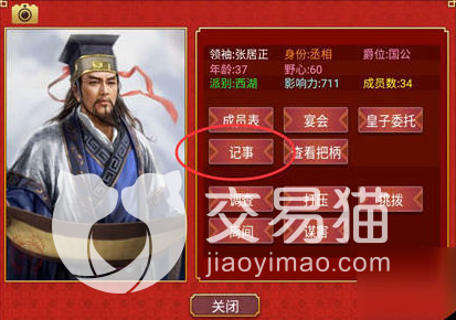 第二个方式就是利用密探,游戏里面有东厂,东厂里面有一个叫做记事的功能,在这个功能里面,玩家是可以看到一些大臣的事件,如果他跟你的妃子见面了,就会被记录下来。