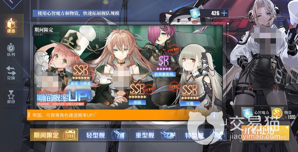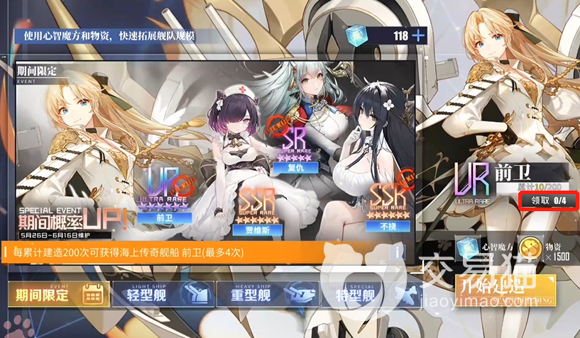 目前除了少数特定时期才会出现的活动以外,彩船仅有一种获得方法,那就是抽卡,游戏内出彩船的概率虽然并不高,但是对比其他同类游戏中的极品角色来说,也已经达到1.2%了,而且关于抽卡这块,碧蓝航线还是有保底的,囊中富裕的朋友可以直接抽取两百次,这期间即使没有出现彩船在事后您也可以点击抽卡界面右下角直接领取一艘。