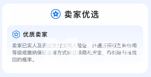 而且交易猫会有“卖家优选”的服务,也就是说在这里进行售卖的卖家们,都已经有了实名制并且通过了支付宝同人验证等操作,并且还有芝麻信用等级授权之类的服务来保证商品安全,以此来让买家更加的放心。