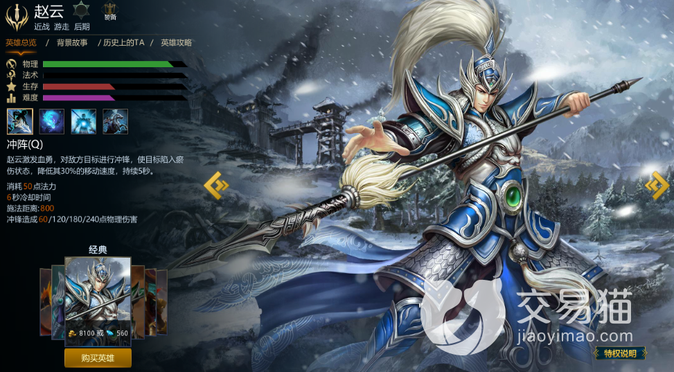 这是一个战士型英雄,他同时兼具爆发,机动性与控制能力,这点从他的四个技能就能看出,Q技能提供一段突进造成伤害并减速敌人,W技能使下三次普攻造成额外伤害,并在第三次攻击时对被突进过的目标造成晕眩效果,此外该技能还有加攻击力的被动效果。E技能开启后获得闪避效果,有一定几率直接闪避敌人攻击。大招则是提升攻速,移速并免疫一切减速。