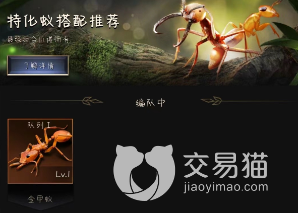 在阵容的搭配上,我们一定也要查缺补漏,不要太过单一,如果整个队伍都是近卫蚁,那么就没有推理了,一旦碰上远距离角色,那么我们只能坐以待毙,太过被动,小编给代价带来了两种搭配方法,第一种是近卫蚁+射手蚁+射手蚁,这个阵容实用性比较强,可以直接攻击对手,不过不太稳定,后期会有些吃力。