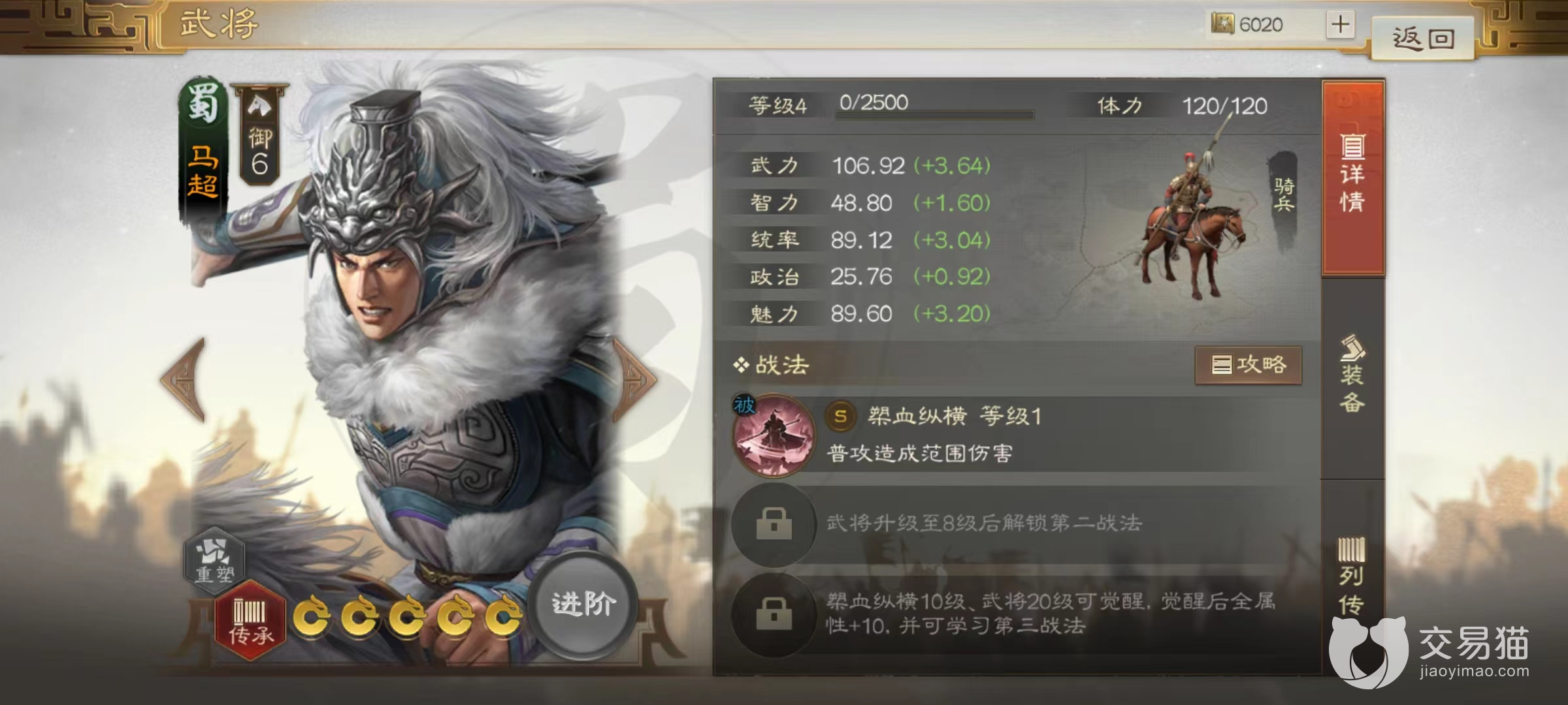 马超属于充值之后赠送的武将,自身拥有极高的武力属性,自带的战法为被动效果,普通攻击后可以再对范围内的敌军附加一次额外伤害。不需其他操作只要放到队伍中就能够持续不断的打出输出。阵容搭配起来也非常简单,无论前期抽到的什么角色都可以和马超组合在一起。马超现在也是极其热门的打野英雄,非常适合开荒。