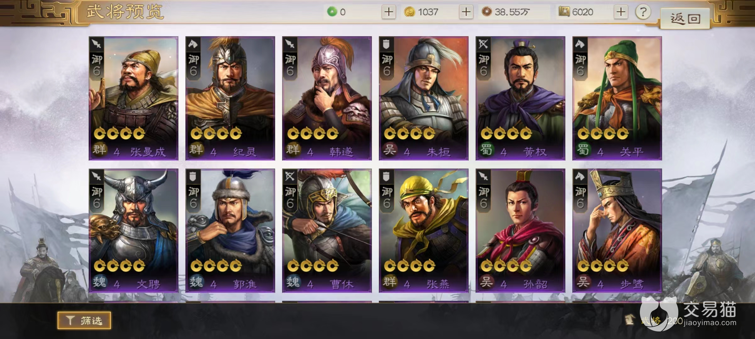 很多玩家在接触游戏时,往往将目光放到了橙色武将中,而忽略了紫色中的佼佼者。其实小编的建议是不要盲目上橙将,因为无论是养成还是战法,橙色武将都需要有大量资源支撑,如果培养不到位发挥出来的威力甚至不如紫色武将,尤其是其中的强势部分。在目前所出现的众多紫色角色里,小编认为最好用的当属关平、纪灵、朱恒、郭淮。