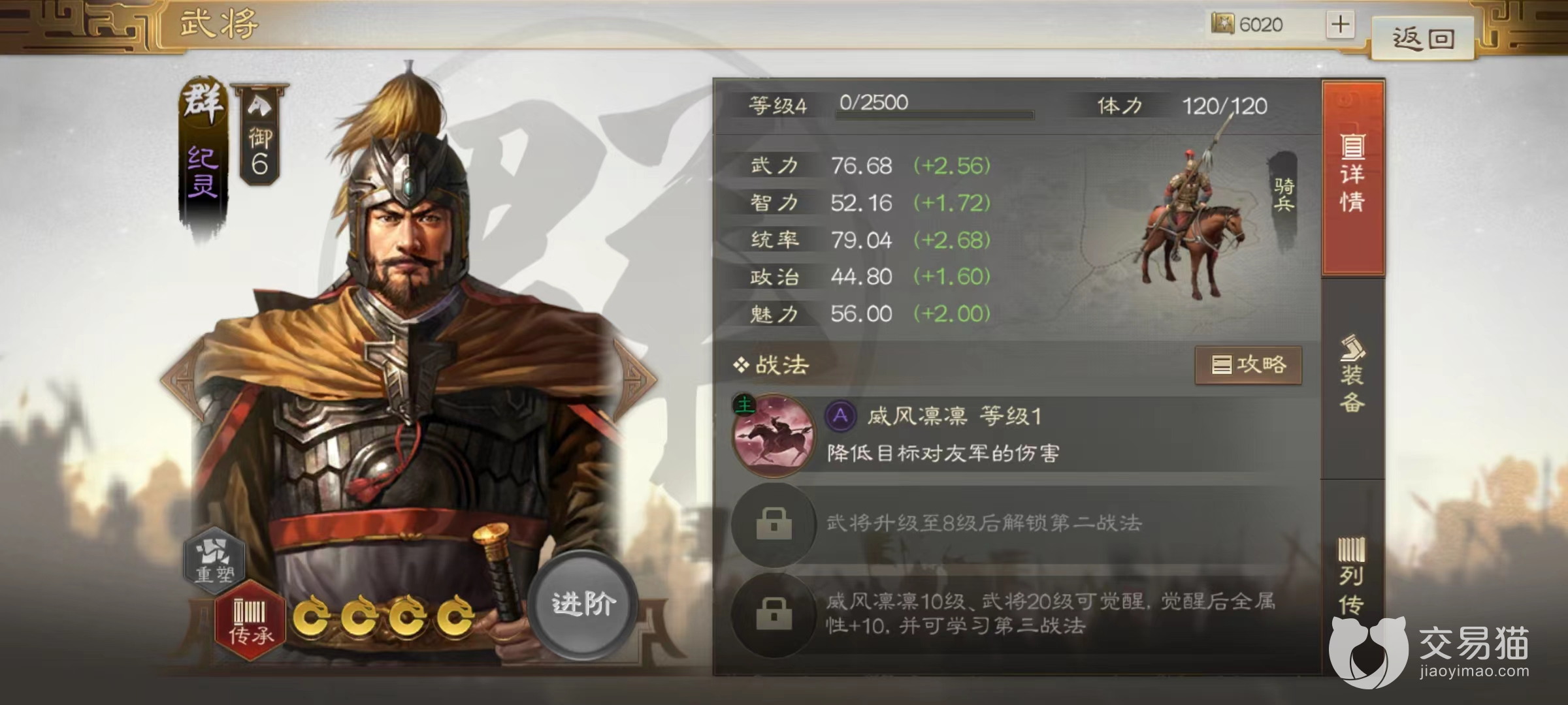 关平自带战法奋突,在造成主动兵刃伤害后会额外对目标身后的敌军再造成一次附加伤害,对于一些站位比较密集的敌人有很好的伤害水准。尤其是在前期开荒阶段更是不可缺少的技能。纪灵自带战法威风凛凛,是一个能对敌方单体造成高额兵刃伤害的技能,并且能对目标施加挑衅。这一点和张飞的效果非常相似,被挑衅的敌方目标如果攻击其他队友会降低造成的伤害。