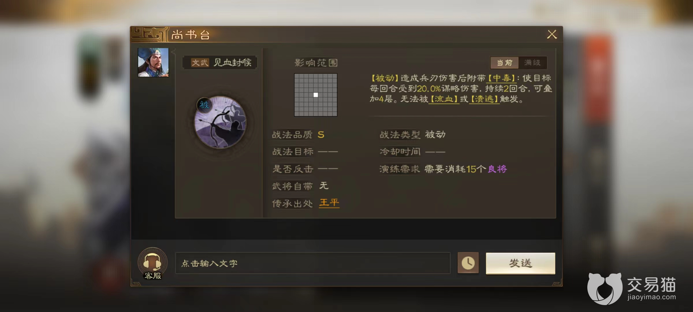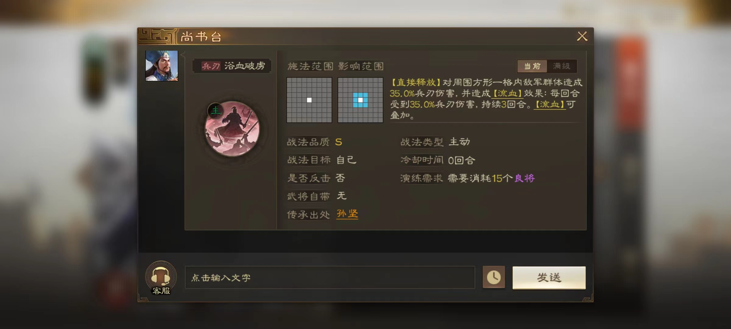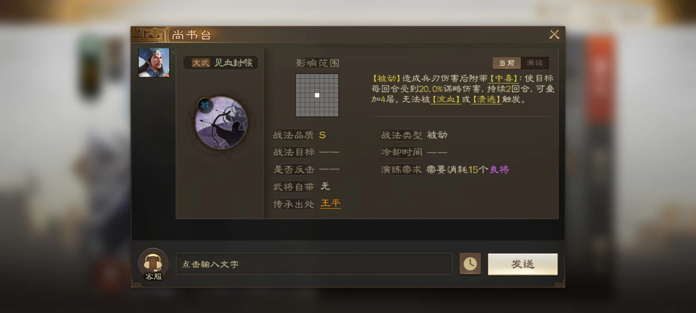 当然如果能够填满三个战法,自然实力更加强势,小编推荐选择浴血破虏和见血封喉的两个技能。浴血破虏能够提高群体伤害,并且对所有伤害目标造成流血状态。见血封喉效果同样如此,造成普攻之后附加中毒效果,能够叠加到4层,无论是中毒还是流血都能让对方在接下来的回合持续受到伤害。赵云本身可以直接冲到敌人最多的地方释放这些技能,造成可观的输出。