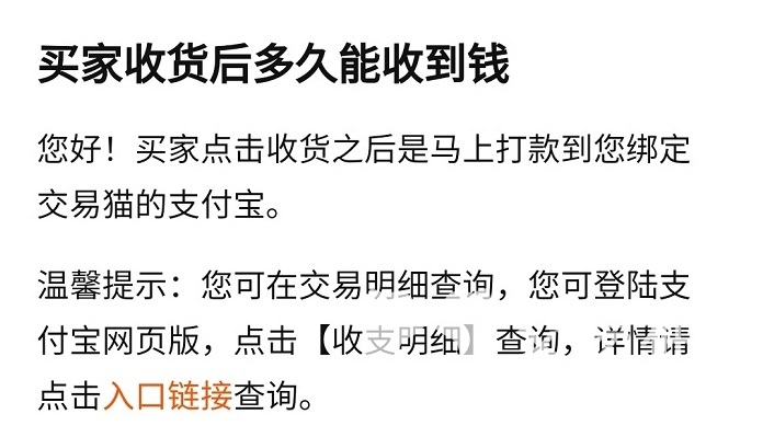 除了这两点可以帮助我们快速将账号出售的小技巧以及功能之外,交易猫还有很多对卖家的保障以及贴心服务。比如买家确认收货之后就没有办法退款,比如交易猫的回款速度是很快的,在交易完成之后基本就可以即时到账了。