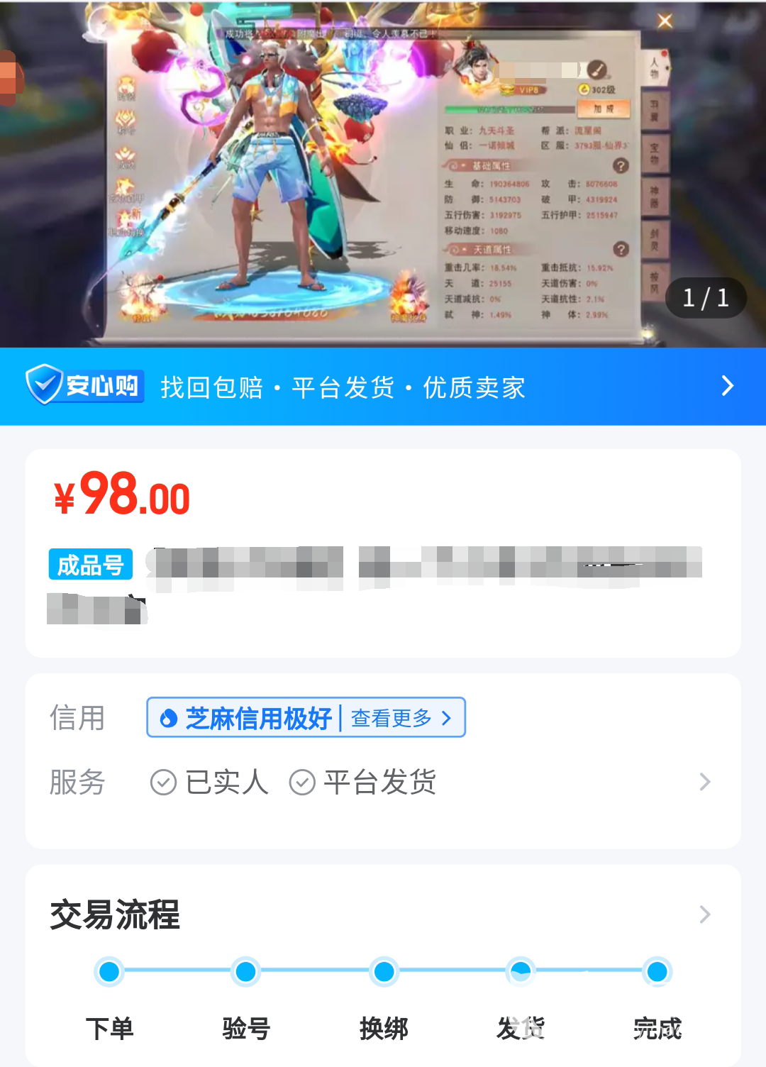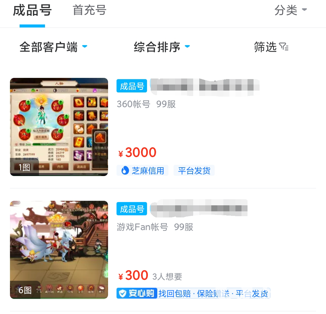 另外,神仙道作为一款角色培养类型的游戏,角色的战力强弱就取决与玩家的等级和装备,有很多玩家不喜欢自己打造角色的过程,况且有些顶级装备并不是仅仅靠做任务,收集材料就能打造出来的。所以玩家就可以在交易猫平台上购买成品号,直接体验战斗力爆表的感觉。而且在平台上,玩家可以货比三家,寻找符合自己预期价格的账号。