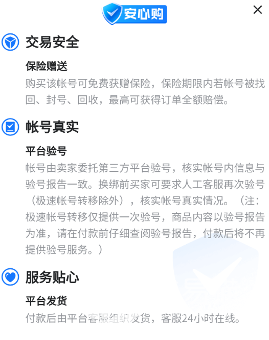 2. 部分商品支持平台验号,可提前查看验号报告。