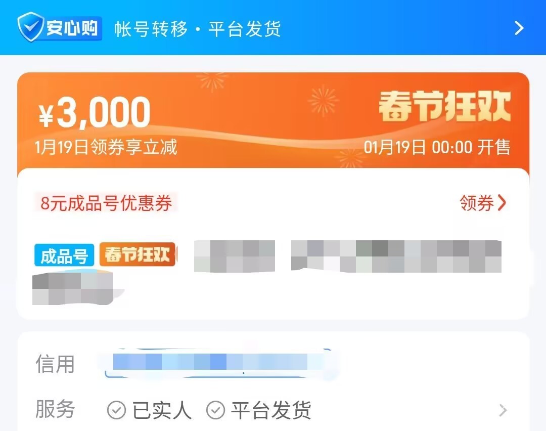 平台为了促销账号也会不定时的举办一些特价出售拍卖节,正值新年最近平台也举办了五折购号以及大额优惠券定时发放的活动,用户们也可以通过每日登录获得的积分来完成抽奖,在自己喜欢的游戏专场中通过兑换券来抵消金额,心仪的账号到手如此实惠。