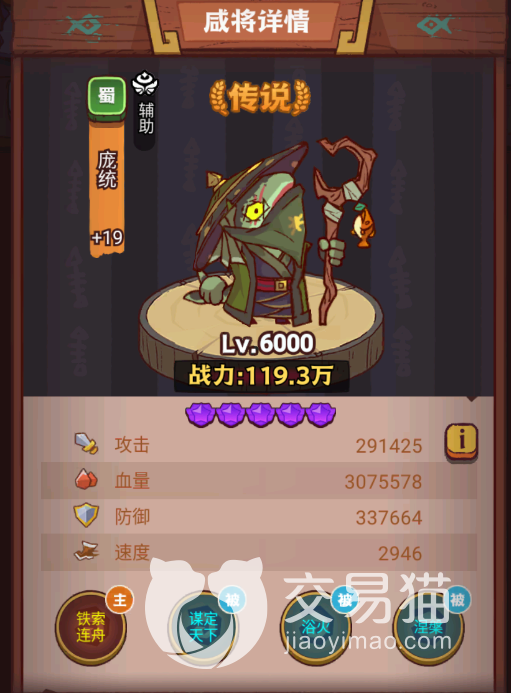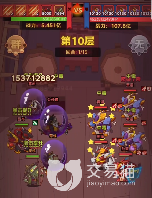 根据以上的敌方信息,小编建议大家配上贾诩、公孙瓒、吕布、庞统和荀彧这个阵容,庞统的主动技能可以让对面的敌人受到238%的攻击伤害,且是对随机三个目标有一定几率使目标冻上2个回合,非常适合用来对付三个贾诩。