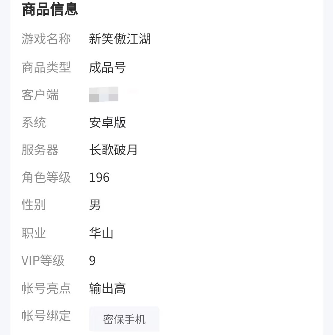每一个游戏的商品信息平台都为大家提供了一个专门的分区介绍,买家一眼就能够锁定账号的渠道、服务器以及职业等基础信息,氪金VIP等级等等,卖家一般也会介绍游戏内双人坐骑、绝品时装以及一些特定活动的返利时装。通过账号标题、图片以及信息的简单描述就能够判断该账号的性价比,还是非常方便的。