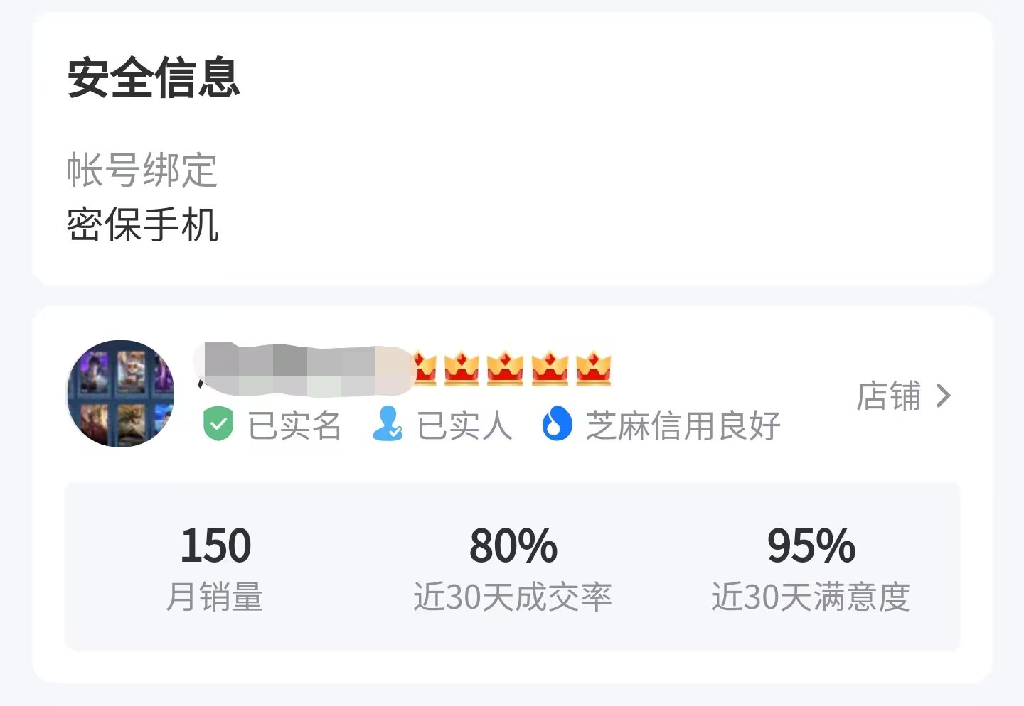 在网络上进行虚拟交易其实追究一切问题的根源就是交易的双方无法能够透彻的得知对方的信用如何,如果在一开始就能够判断对方的信用等级从而决定是否交易就可以大大地避免被骗的问题发生,平台将每个卖家的入驻级别、芝麻信用等级以及实人认证等相关信息和账号信息一起展示出来,便于买家判断。