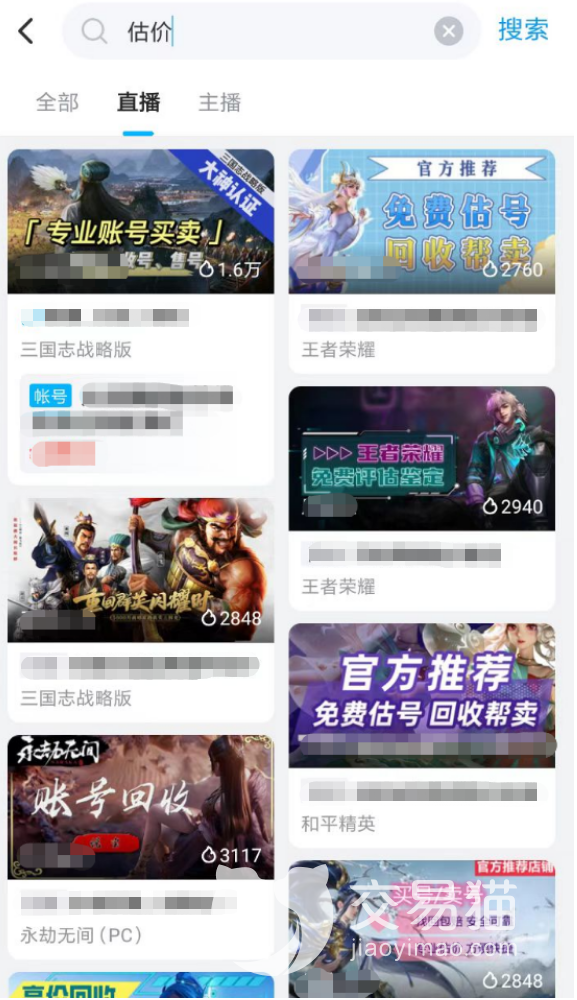 3、不过,为了更好让每一个玩家都能够在app当中享受到各类游戏的账号估价,小编也建议玩家合理的去使用一下平台内的直播估价功能。每一个直播间都会针对性的根据一款游戏来进行各种账号交易或估价,玩家只需要去关注感兴趣的直播间即可。