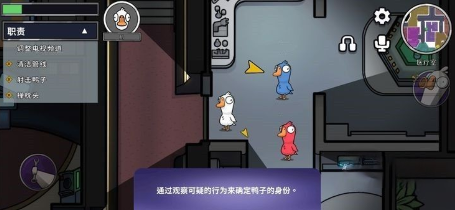 作为好人的大鹅们包含正义使者、警长、复仇者和加拿大等一系列的职业,可以在坏人的轨迹下利用特殊的技能得以生存。而鸭子们除了刀之外,还有假任务,可以把所有人蒙骗过去。中立阵营也是技能独特,有些可以把鸟类吃进肚子里面去,有的则是能够拖动尸体。在对决的过程中,可以带来很多的欢乐。