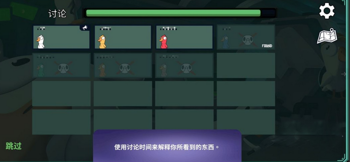 玩家们如果是鸭子的职业,就可以使用技能靠近其中一个玩家将它刀死,被刀的鸟类就会变成鸡腿,只要有人看到报警了,就会进入会议状态。但有的中立阵营,比如秃鹫就可以把尸体吃掉,完成一定的数量,就能够从游戏中胜出。