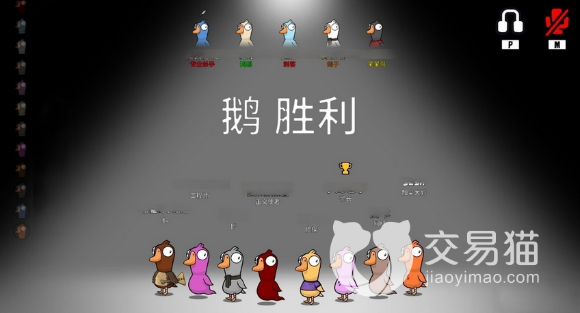 大鹅们如果想要胜出,一共有两种方式。其中一种就是将规定的任务全部都完成,但是很多玩家一般都不会去做任务。另一种则是将所有的带刀坏人彻底打败,存活到最后。身为鸭子的玩家,自然是把好人都刀完,才能够取得最后的胜利。而中立阵营则在他们之间起到了平衡的作用,他们也有自己的任务,只要能够完成,就能够打败所有的玩家。