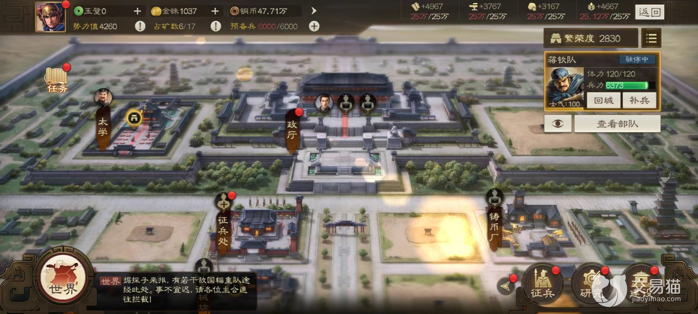 城市建设也是游戏中非常重要的一项内容,无论是征兵还是强化战力,都需要有良好城建作为基础,而内政就是和这一项玩法息息相关的内容。大家在打开武将图鉴时候,可以看到有一些角色在卡牌上直接显示出内政这两字,也就代表着这样的武将可能无法出战,但是能够在另一个方向发挥出最好的作用。在选择方面小编极力推荐刘表,王允和张昭这三名角色。
