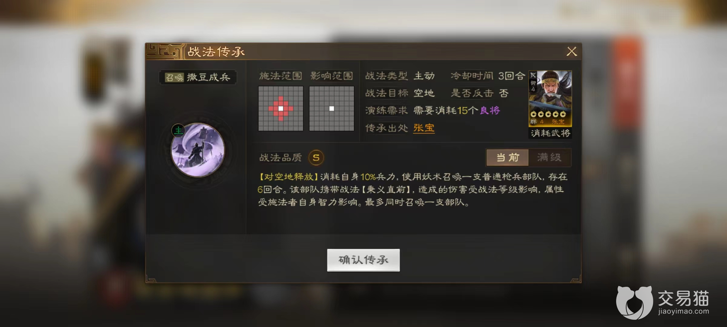 召唤型技能一向是游戏中非常罕见类型,除了可以造成持续输出之外,最大作用还在于作为肉盾去承受对方伤害。毕竟很多技能都是指向释放,如果召唤物抵挡了自然我方友军武将就少受到损伤,如果能够将对方核心技能挡下来更是能够起到很好的作用。在另外两个技能选择上,同样以召唤为主,小编推荐撒豆成兵和机略纵横。