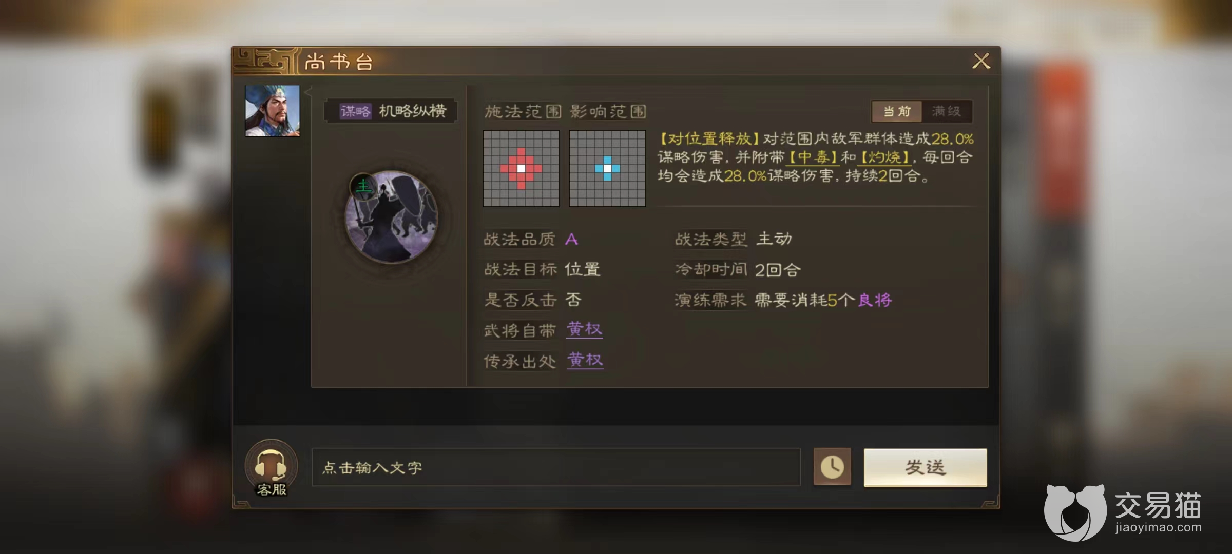 撒豆成兵是其自身分解出来的技能,在获取上有些难度不过非常切合自身情况,能够再召唤出另外一支枪兵部队,同样拥有战法和受等级以及智力影响,这样有两个召唤出来的部队就能更好去分担伤害,也能给敌方带来比较大的麻烦。机略纵横伤害虽然不高,但是能附加中毒和灼烧效果,这样使得张宝在搭配组合的时候就能适应更多阵容。