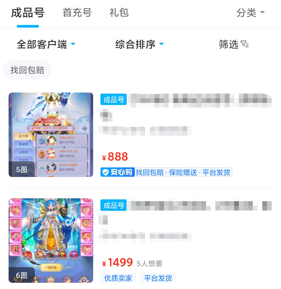 其次,在交易猫平台上交易游戏账号,整个流程清晰透明,玩家可以在平台上多维度查看自己要购买的账号信息,官方也会查验账号,尽量避免出现卖家虚假宣传的情况。同时,交易猫账号交易平台保证交易过程的安全,保护买卖双方的权益。平台针对部分商品还有安心购功能,如果账号出现找回的情况,买家会获得一定的赔偿。