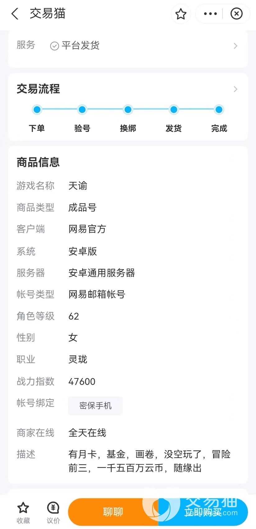 如果大家也想购买一个账号的话,就不妨去试试交易猫这个游戏交易平台,相信大家在使用过后一定不会失望的,接下来就让小编为大家介绍一下这个平台的特点吧!