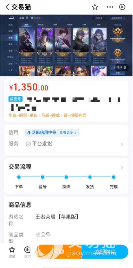 王者荣耀这款手游相信国内对于它应该并不陌生,无论男女老少或多或少都接触过这款游戏。即时的对战系统,团队协作的高级玩法,优美的皮肤画风等等使得很多人都对它爱不释手。那么王者荣耀国服账号值多少钱?哪里能估值账号呢?接下来小编给大家带来优质的买号平台推荐,大部分玩家都会选择到交易猫平台进行游戏账号交易,可以买皮肤号、等级号想买号的玩家一起来看看吧!