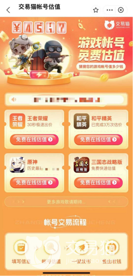 在交易猫平台上面购买王者账号有很多好处,最明显的莫过于有一个免费估值功能。可别小看了这个功能,这个功能可以帮助你评估你的账号或者你想买的账号,不会因为是新手或者小白,而被别人当肥猪宰,这样保证了你花小钱就可以办大事,是不是一个十分简便且实用的功能呢?