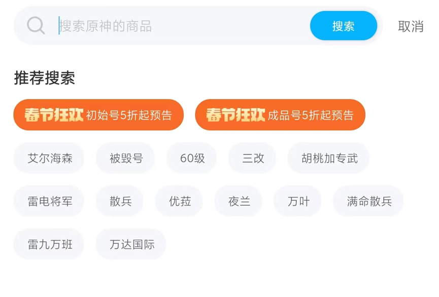 如果在这里还没有找到心仪的账号,也可以直接点开原神专区内上方的搜索栏,输入自己想要的角色或者世界等级,近期游戏有很多海灯节的活动,小伙伴们可以抓紧时间购买账号去体验哦。