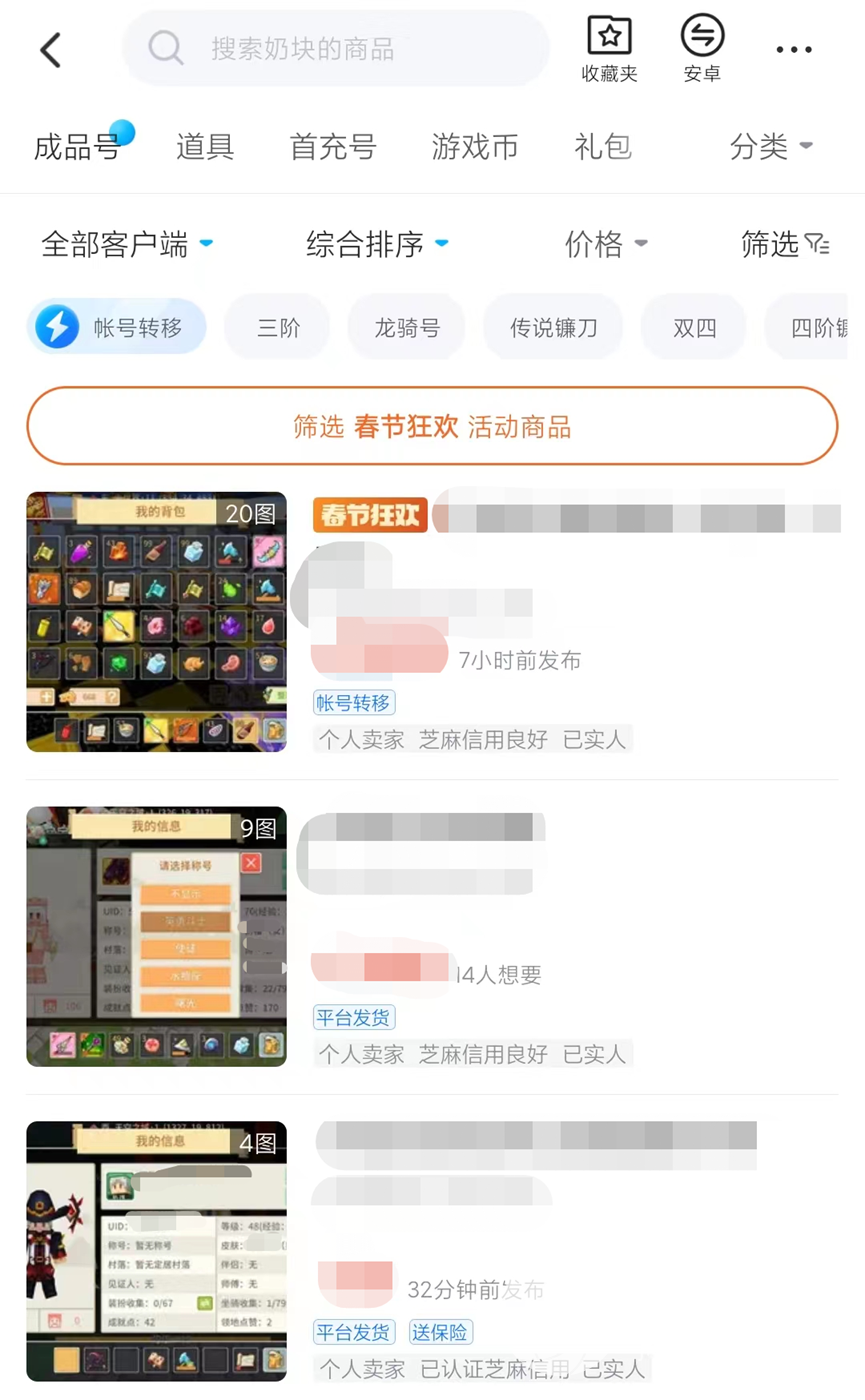 以上就是小编针对奶块这一游戏的成品号可以在哪里买的建议啦,因为买号还是需要小伙伴们自己拿主意,别人再怎么说也只能是建议,但是了解了这么好的一个交易平台,也是给大家一个更好的选择不是吗?