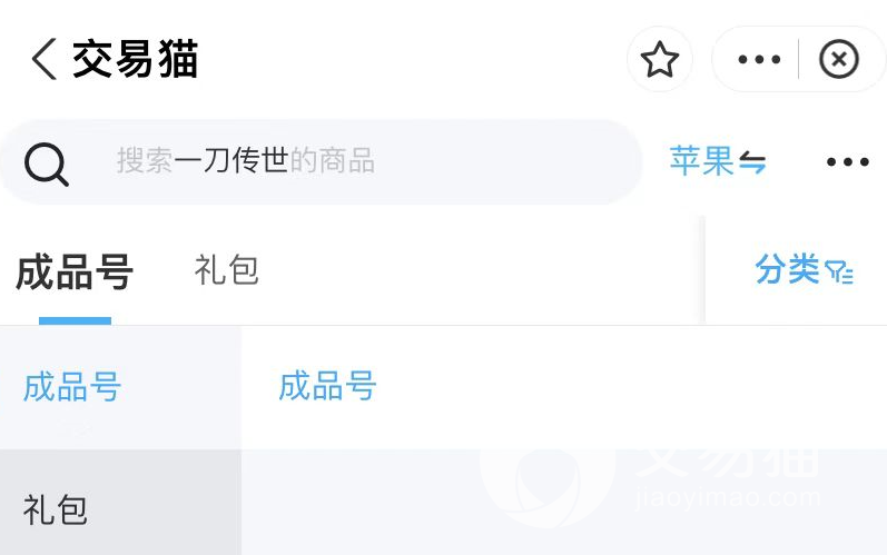 今天给大家推荐的就是交易猫这个app,交易猫的人气很高,拥有海量的游戏资源,我们可以在这里面看到很多热门游戏资源,玩家们可以在其中找到很多游戏账号,不少服务器排名前三的账号我们都是可以买到的,想要进行账号的估价也是很简单的,玩家们只需要在首页搜索一刀传世,找到对应的游戏之后直接搜索成品号就能看到其他玩家的定价,我们可以根据这个价格数据来进行判断。