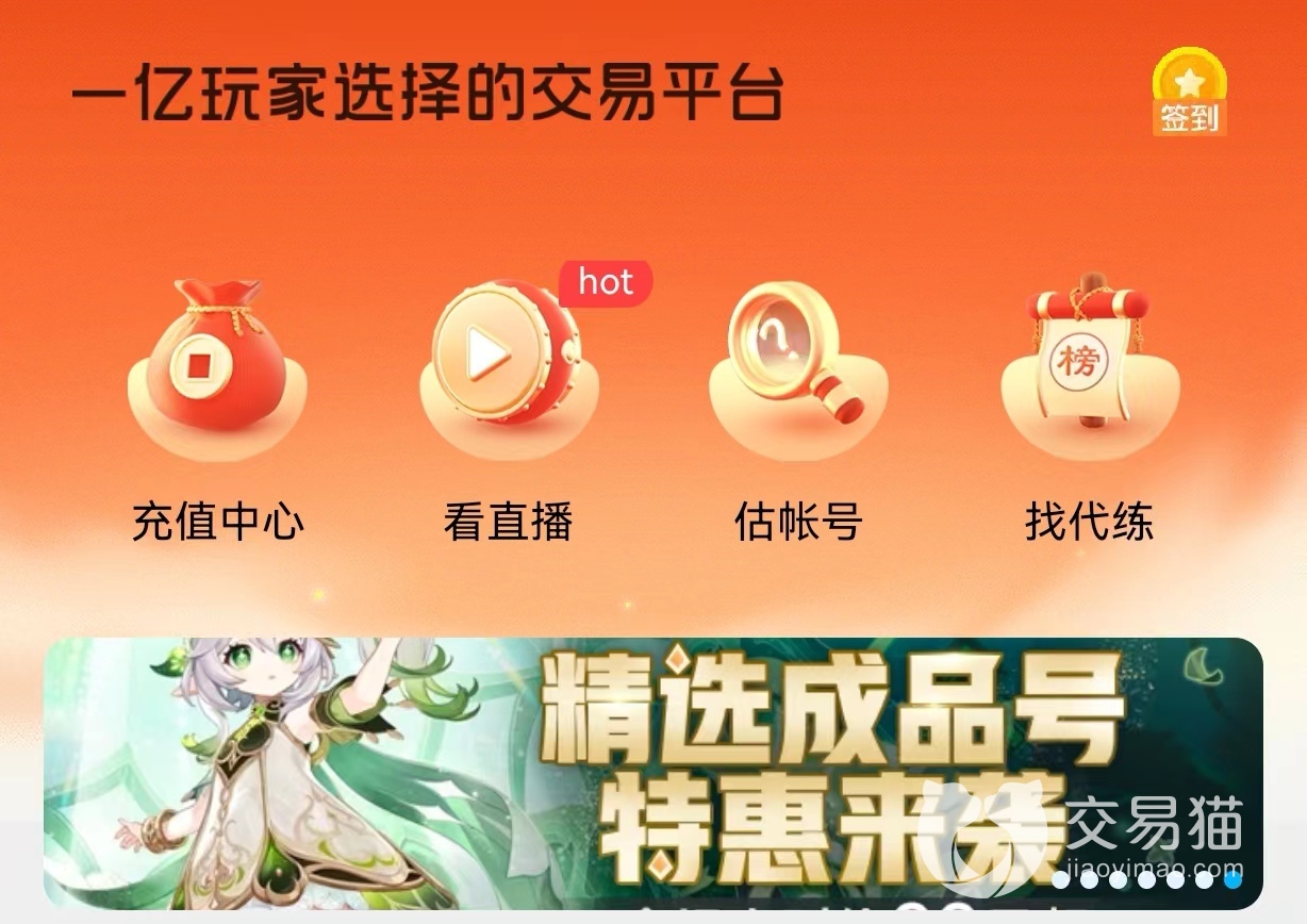 小编今天要推荐的软件是交易猫,交易猫包含当下各大热门游戏,像原神、王者荣耀、英雄联盟等游戏都有引入,而且价格都是比较合理优惠的。平台用户群体庞大,卖家不用担心没有客户浏览卖不出去游;戏账号库存充足,买家也不用担心会找不到心仪的游戏账号。