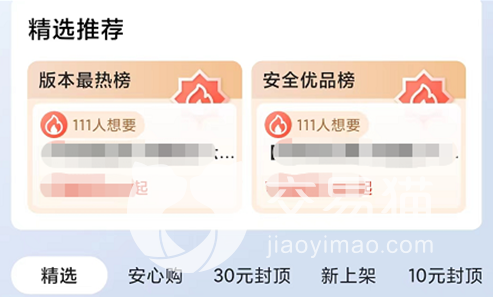 为了提升大家购买账号的体验,平台也提供了精选推荐专区,不仅可以自由的搜索,还能通过各个榜单来挑选出自己所需要的账号,在各个榜单里不仅能够轻松获取同类型的所有账号,还能通过价格比对挑选到性价比最高的商品,对应的10元以及30元封顶专区,满足了用户们的各种预算,选择空间非常大。