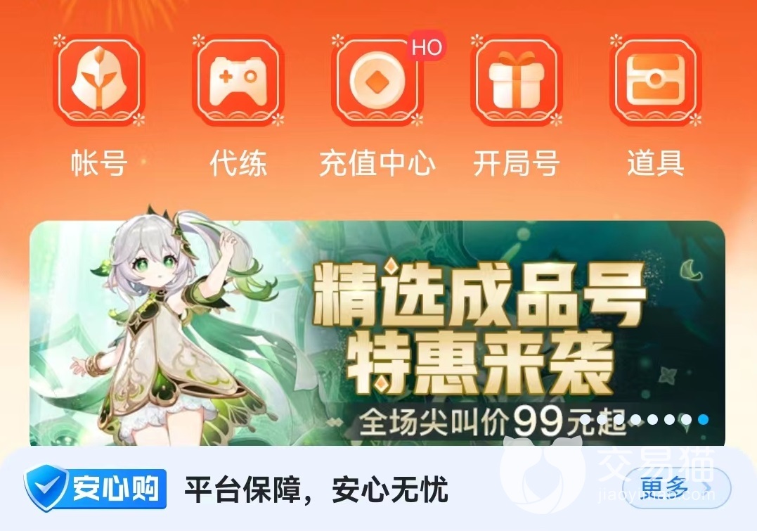 现在除了端游和手游之外还有网页游戏都有很多值得体验的作品,这些都可以进行游戏号交易。所以在选择平台的时候,一定要优先考虑那些可交易商品类型和数量丰富的软件。小编推荐去交易猫游戏账号交易平台购买自己喜欢的游戏账号,这里商品数量多可选择内容非常广泛,而且还有一系列贴心服务提供给用户。