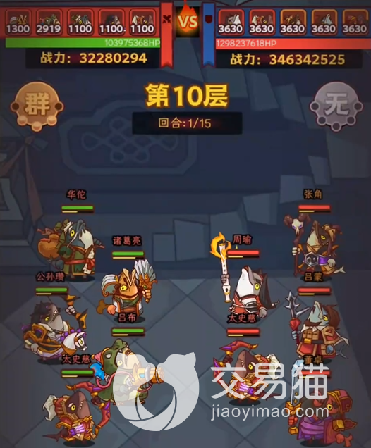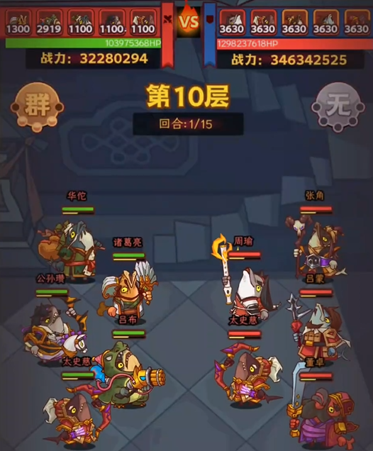 在开始之前,我们要先看看对面有哪些角色,它的前排是周瑜和太史慈,后排是张角、吕蒙和董卓,后排三个其实很好解决,因为在游戏内他们的面板并不是很高,但周瑜和太史慈则不一样了,这也是这一关的难点。