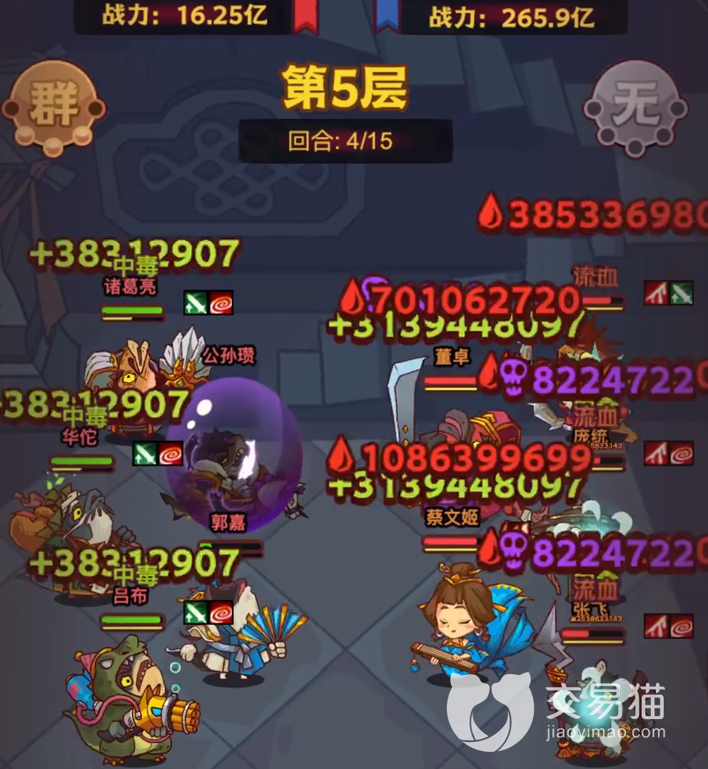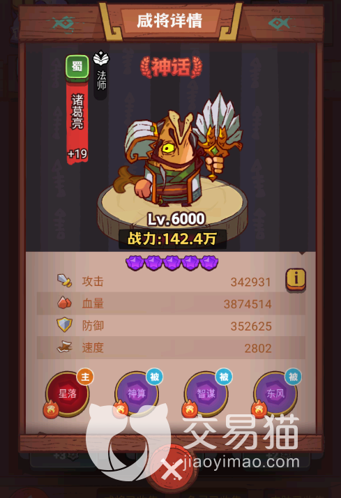诸葛亮这名咸将的被动技能“东风”可以让他的普攻变成群攻,并有一定几率让让被攻击的目标带有灼烧、冰冻或者中毒的建议效果,并可以持续3个回合,他的主动技能还可以对敌人所有人造成高额的伤害,甚至能提升自身攻击的百分比,打出更高伤害。