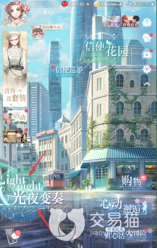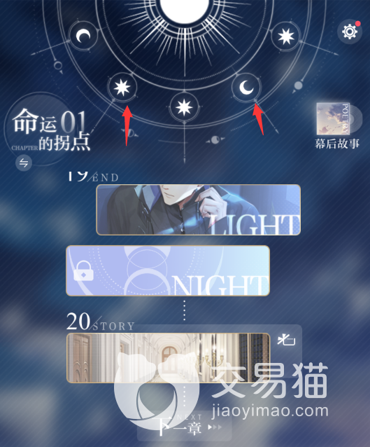 想要看到太阳和月亮的走向,我们首先就得在主界面点击左下方的“光夜变奏”,在这里进行剧情,我们在走剧情的同时,会发现有些是可以由我们来选择的,在我们选择完并结束了这一段以后,就会看到一个太阳或者月亮了。