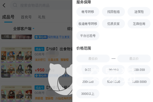 交易猫游戏中玩家是可以可以对账号进行选择的,不仅可以通过上面的词条来选择,还有筛选,在筛选的途中玩家还可以在上面进行价格筛选,所以对于账号的丰富性上面来说交易猫还是合格的。
