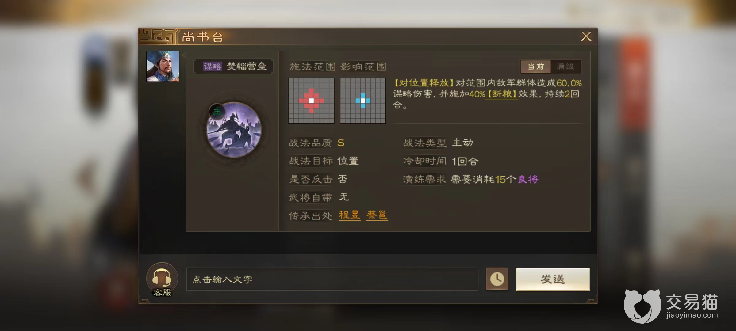 但这一个战法效果就使得此角色在对抗很多热门阵容时都有出色发挥,尤其是对方对细致才不是很熟悉的情况下,更是对此技能防不胜防,在不经意间就损失了大量兵力。另外两个战法搭配上,小编推荐选择石室清野和焚辎营垒,这两个都是偏状态型技能,一起组合起来让其真正成为干扰对方行动的最佳人选,虽然在爆发上没有很好的发挥,不过整场战斗下来伤害总量绝不会低。
