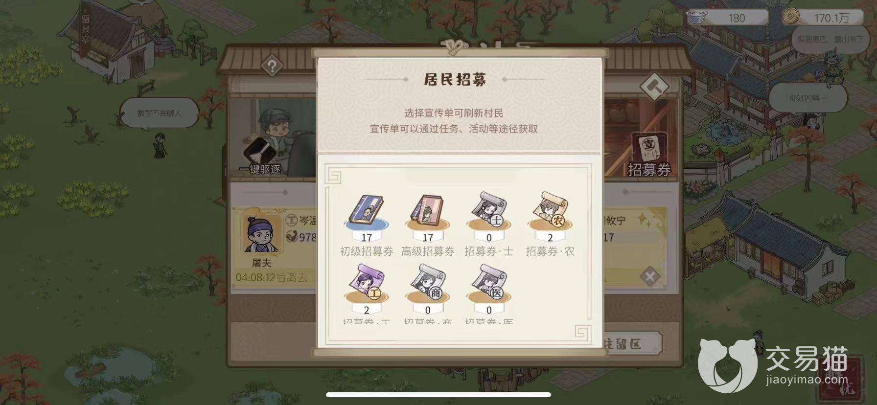 村民基本都是招募来的,玩家们可以在驿站内招募,这个招募需要招募券,我们可以解锁初级招募方式,如果我们可以完成更多的任务,则是可以获取更多的出击招募券,虽然获取到的居民品质一般,但是前期应个急是很不错的。