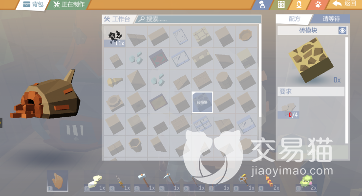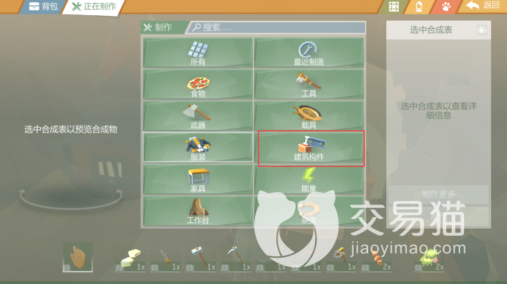 在这之后你需要打开制作面板,就在背包面板旁边很容易看到,找到建筑构件选择方块,毕竟是像素游戏,方块是构成这个世界的最基本元素,找到自己喜欢的方块类型,不过作为新手的话基本也就前期用石头或者木材这类介质,毕竟收集起来非常方便。