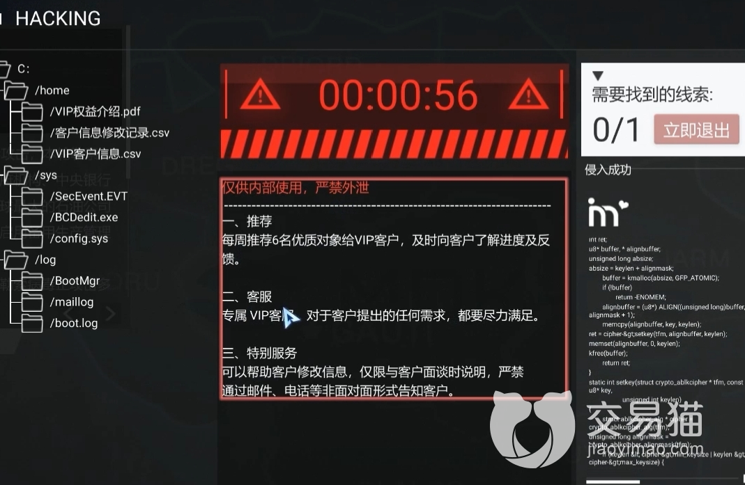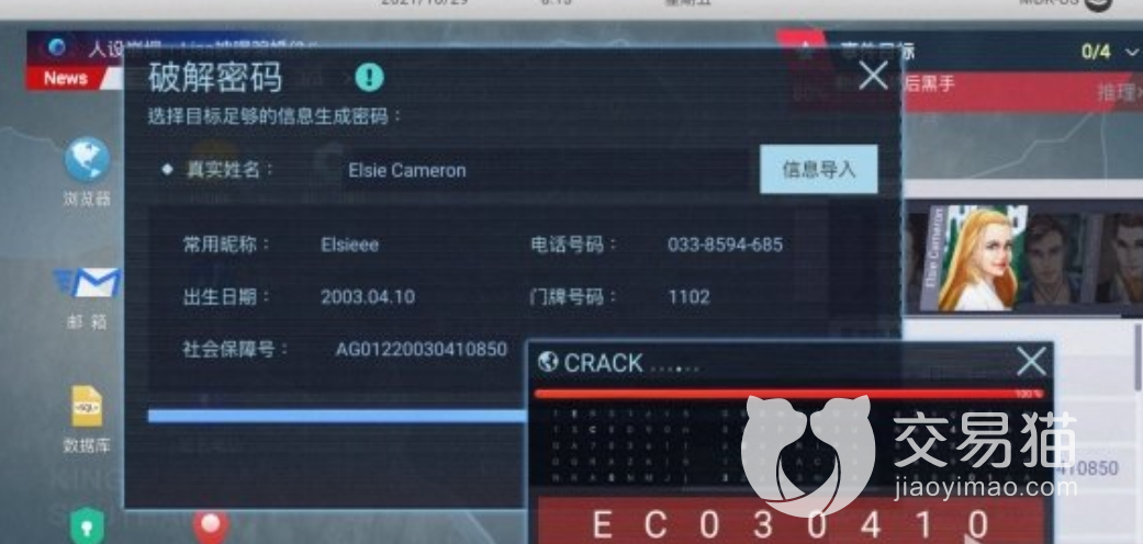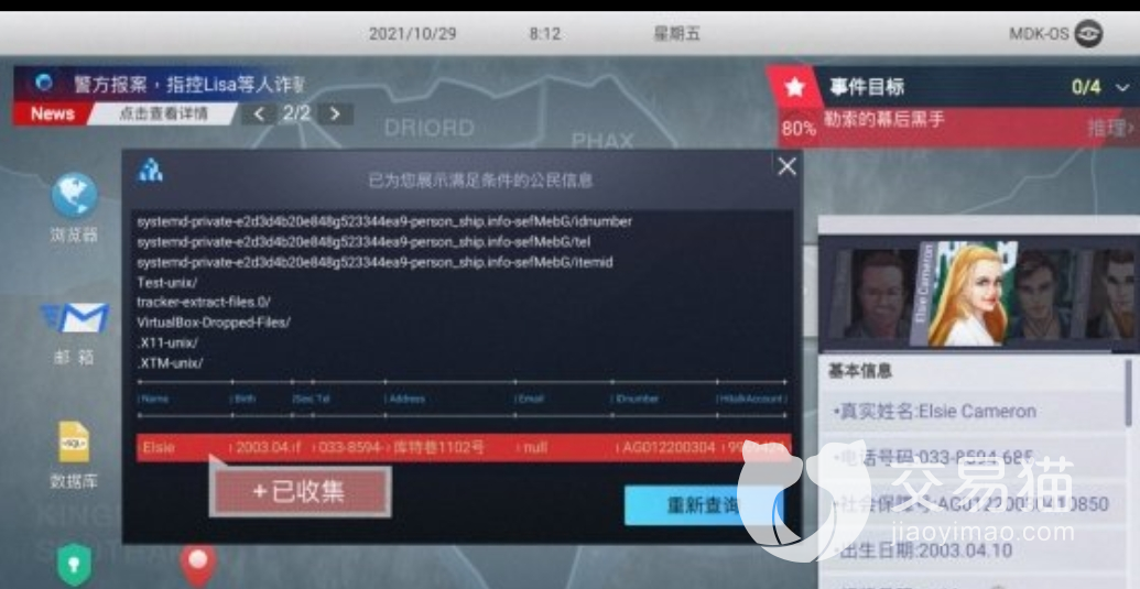 拿到所有讯息后,通过浏览器多次轮番的操作后,最终会得到账号和密码。这时打开数据库,将这个人的真实姓名和账号密码全部输入,再联系自己的推理出来结论,就可以成功登录到账户中了。而当我们入侵账号后会有人出面阻止,正想一探究竟的时候,剧情在这戛然而止了,本章也就此结束。